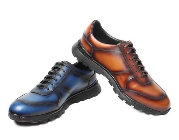 The Casper Sport Luxe Trainer by Adams Kahz blends athletic energy with artisan craftsmanship — available in rich hand-finished hues like deep blue and burnished tan. Comfort meets high style.